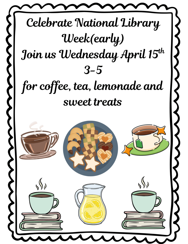 The Eddy-New Rockford Library will be celebrating National Library Week a week early with a Library Tea on Wednesday April 15th from 3-5, stop in and have a sweet treat and cup of coffee, tea or lemonade. We are celebrating a week early because the Library Board has decided to celebrate National Library Week by giving our librarian Susie Sharp a week off to recharge before the Summer Reading Program starts, more info on that to come soon! During this National Library Week our librarian Susie would like to thank her board members for their dedication to the library and all their help throughout the year! Our library board members are, Melanie Homelvig, Lyndsey Smith, Zach Fleming, Jennifer Baumbach and Jessica Hawkes.